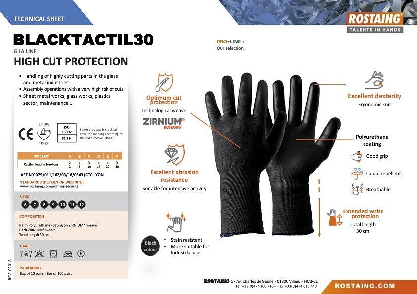 BLACKTACTIL30 Vágásbiztos hosszú szárú ipari szerelőkesztyű 6