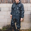 Ez a kiváló minőségű vízálló szett, amely kabátból és nadrágból áll, maximális védelmet és kényelmet nyújt az időjárás viszontagságaival szemben. A kabát ragasztott varrásokkal, hónalj- és hátsó vállszellőzéssel, valamint csípőnél állítható húzózsinórral rendelkezik a tökéletes illeszkedés érdekében. A nadrág rugalmas derékkal, ragasztott varrásokkal, könnyen hozzáférhető zsebekkel és patentos bokarész kialakítással biztosítja a kényelmes viseletet. Az anyag 170T poliészter/PV, amely strapabíró és vízálló. A szett nagy (44″/46″) és extra nagy (46″/48″) méretekben érhető el, normál szárhosszal.