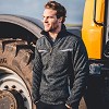 Ez a kiváló minőségű pulóver kétféle anyagból készült a maximális kényelem és tartósság érdekében. A kötött anyag 100% poliészterből készült, 370 g/m² súlyú, ami meleg és strapabíró, míg a softshell anyag 100% rugalmas poliészterből készült, 280 g/m² súlyú, amely rugalmasságot és mozgásszabadságot biztosít. A negyed cipzáros kialakítás könnyű fel- és levételt tesz lehetővé. A két oldalsó cipzáras zseb praktikus tárolási lehetőséget nyújt. Az elasztikus, szalaggal szegélyezett mandzsetták és az állítható húzózsinórral ellátott alsó szegély biztosítják a testhezálló illeszkedést. A mellkason és a vállakon található fényvisszaverő szalagok, valamint a JCB fényvisszaverő logó gondoskodnak a láthatóságról és a biztonságról.