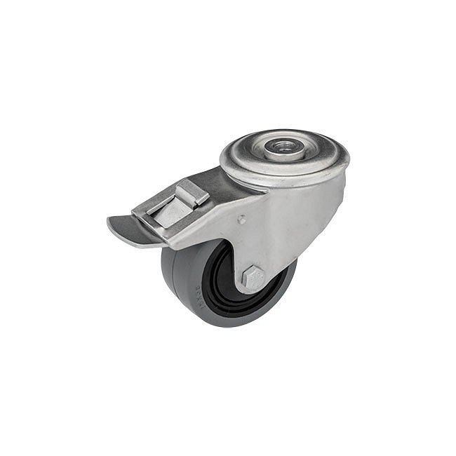 Hátfuratos - fékes Szürke gumis nyommentes kerék 100 mm