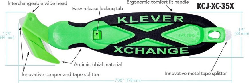 KLEVER Kleen XChange biztonsági kés többcélú, széles fejjel Zöld