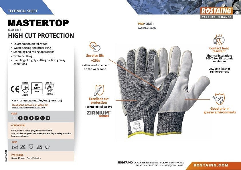 Magas vágásállóságú védőkesztyű Hulladékválogatás és -feldolgozás Környezetvédelem, fém, fa Bélyegző és hengerlési műveletek Fakitermelés Magas vágási igényű alkatrészek kezelése zsíros környezetben Élettartam: +25% - bőr megerősítés a kopási zónában Kiváló vágásvédelem Jó tapadás zsíros környezetben Éintkezési hőállóság: Hőszigetelés: 100 °C min. 15 másodpercig