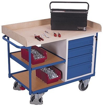 Műhelykocsi 3 rakfelülettel - 4 db zárható fiókkal