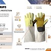 Olajálló védőkesztyű Hővédelem Fém Hengerlési műveletek: szalagok hideghengerlése, ellenőrzés a hengerlési folyamat végén Tekercsbehelyezés, vezetés és elakadásmentesítő műveletek Maximális vágásállóság Olajos körülmények között is megmaradó fogás: ergonomikus, hasított marhabőrből készült, olajjal védett megerősítés Alkarvédelem: mandzsetta hossza 200 mm Vénás tapasz Éintkezési hőállóság és lángállóság: Hőszigetelés: 350 °C min. 15 másodpercig
