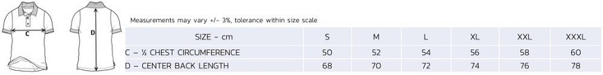 Rövid ujjú póló kontrasztos színű gombos zárással. A gallér kontrasztos színű szegéllyel és három gombbal záródik. Bordázott karkivágás és kontrasztos színű oldalsó hasítékok az alján.