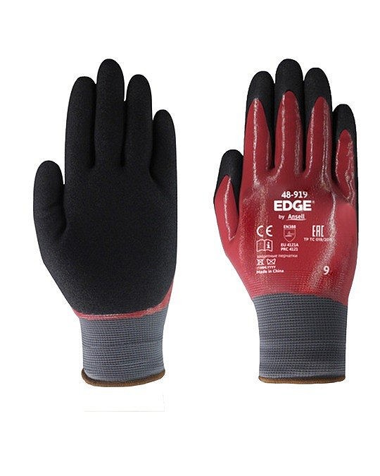 Varrat nélküli, kötött bélés, teljes mértékben mártott NBR bevonattal az ipari folyadékokkal szembeni védelem érdekében. Az érdes bevonat nagyfokú tapadást biztosít olajos környezetben.